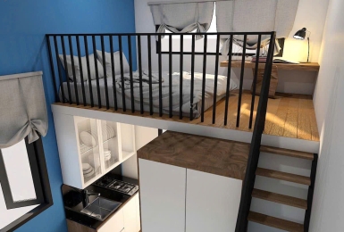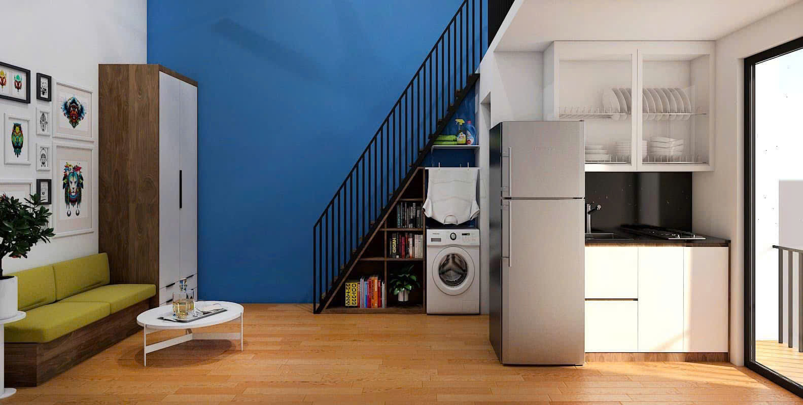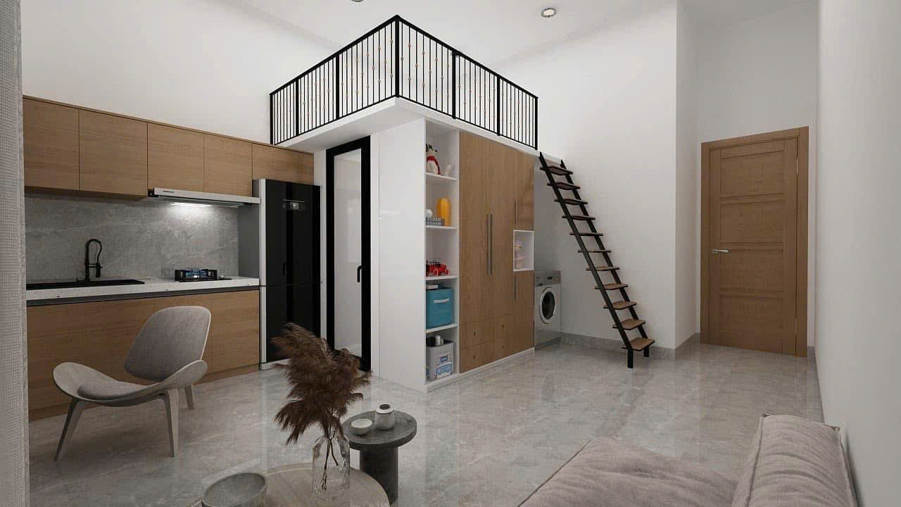 + Nội thất Tối ưu: Lắp đặt các hạng mục nội thất cơ bản, thông minh, tích hợp nhiều chức năng (ví dụ: giường có ngăn kéo, tủ bếp nhỏ gọn) để tối đa hóa không gian sinh hoạt trong căn hộ mini.