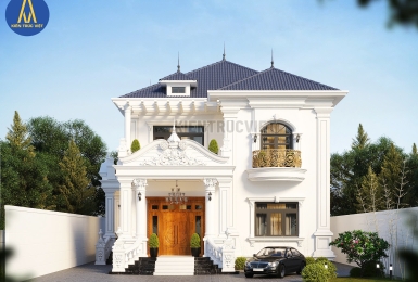 + Phong cách Tân Cổ Điển: Ngôi nhà nổi bật với các chi tiết phào chỉ tinh xảo, cột trụ vững chắc và ban công trang nhã, tạo nên vẻ ngoài sang trọng và bề thế. Tuy nhiên, các chi tiết được tiết chế, không quá cầu kỳ như kiến trúc cổ điển thuần túy, mang lại sự tinh tế và phù hợp với xu hướng hiện đại.