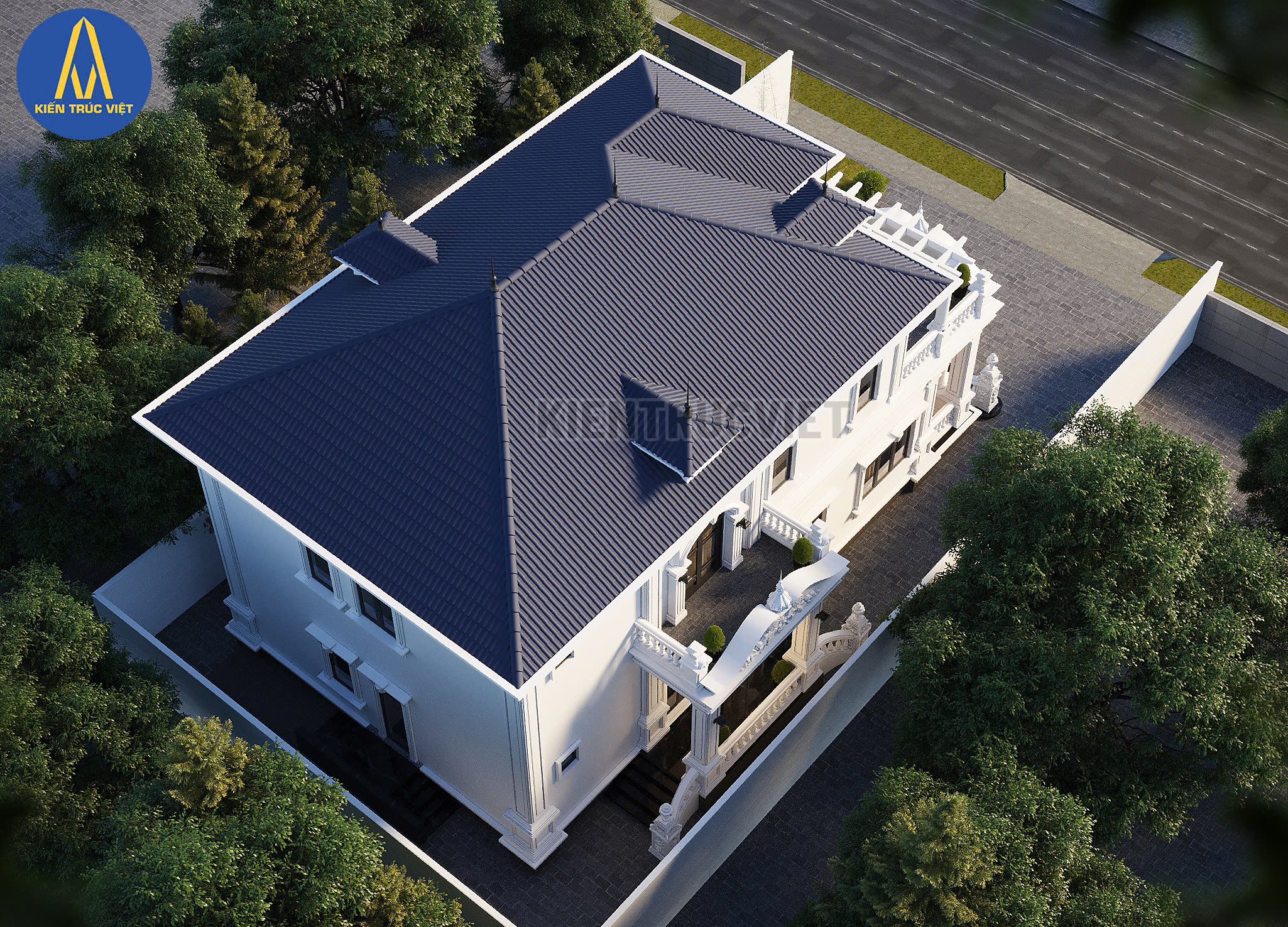 Một trong những minh chứng rõ ràng nhất cho năng lực thiết kế của Kiến Trúc Việt chính là mẫu nhà 2 tầng mái Nhật tân cổ điển 10x16 (diện tích sàn 10x16m) của gia đình Anh Quân tại Lâm Đồng. công trình này không chỉ là một công trình nhà ở thông thường, mà còn là một tác phẩm kiến trúc, kết hợp hoàn hảo giữa nét cổ điển quý phái và sự tiện nghi hiện đại.