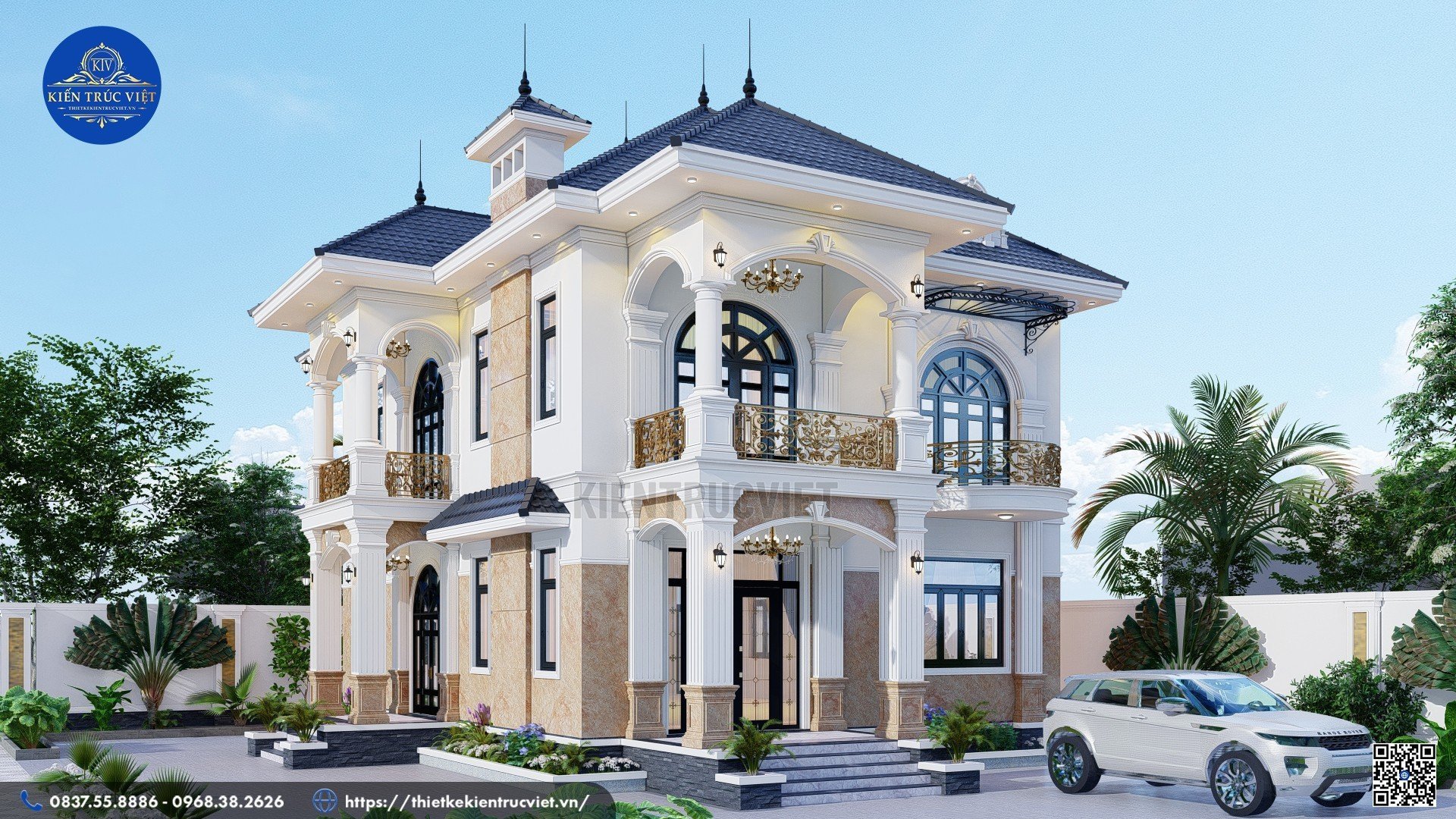 Sự kết hợp giữa mái Nhật (với đặc trưng mở rộng ra các hướng, tạo sự cân bằng) và kiến trúc Tân cổ điển (với các phào chỉ tinh tế, cột vững chãi) chính là lời giải hoàn hảo cho bài toán của anh Hoàng.