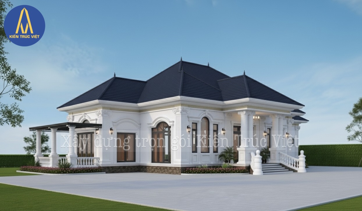 Kiến Trúc Việt xin giới thiệu mẫu biệt thự cấp 4 mái Nhật siêu phẩm, được thiết kế thi công nhà đẹp trọn gói cho gia đình Anh Hoàng tại Hưng Yên, với quy mô và kích thước ấn tượng.